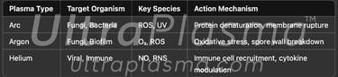 • Noble gas plasma with strong antibacterial and antifungal effects.