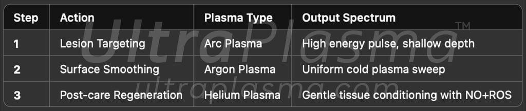The UltraPlasma™ system introduces a groundbreaking approach by combining arc plasma, argon plasma, and helium plasma technologies—engineered with advanced modulation software and multi-platform gas emission hardware. This allows personalized, non-invasive, and tissue-specific interaction using controlled plasma exposure.